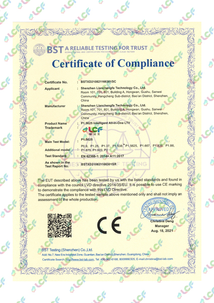 CE 证书(leyu.乐鱼一体机) P1.5625